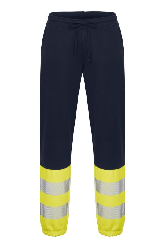 Non-Metal and Inherent Flame Retardant Hi-Vis joggers in sweatshirt material. The fabric is PFAS-free and 50% of the cotton is recycled.